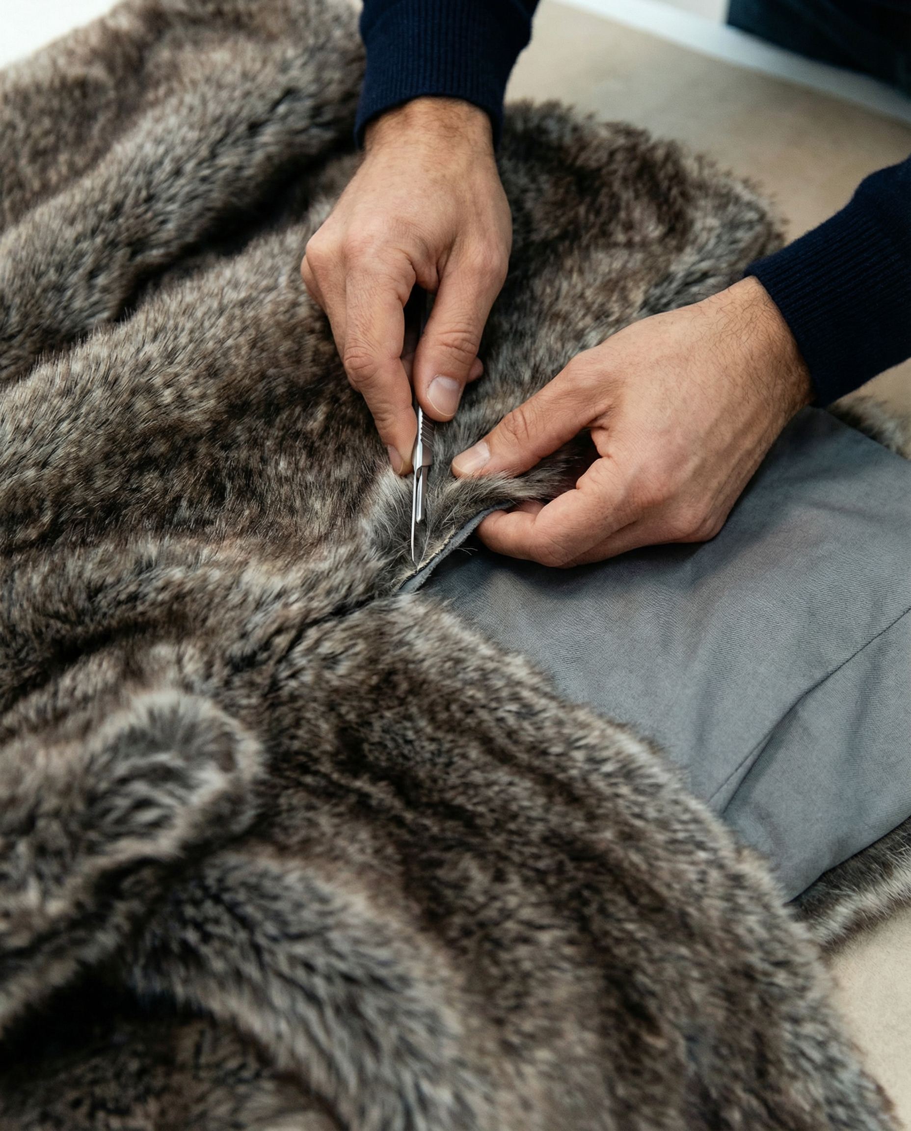 In Paris, a partner workshop handcrafts the faux fur pieces, combining excellence and craftsmanship.